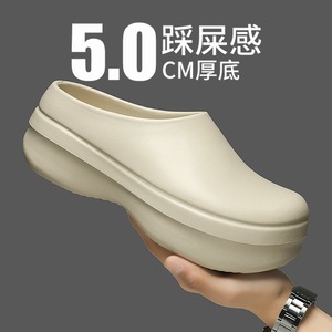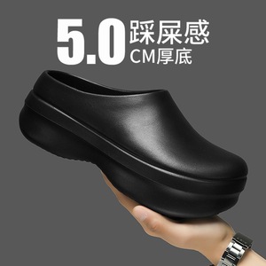 增高包头拖鞋男夏季新款外穿厚底防滑耐磨黑色防水防油厨师鞋