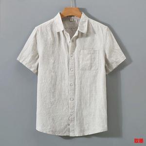 夏のメンズポケット半袖リネンシャツメンズカジュアルコットンとリネンの薄い半袖シャツカーディガントップジャケットトレンディ