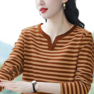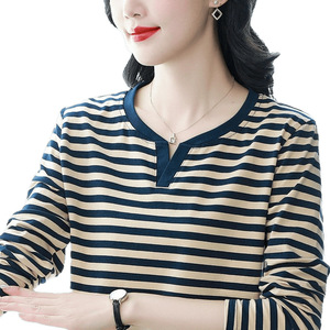 春秋の太ったmmの大きいサイズのゆったりした長袖のtシャツの婦人服はやせている上着の中年のお母さんの中で秋の服の底のシャツを掛けます。