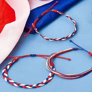 ヨーロッパとアメリカのクロスボーダーファッション防水ワックスラインサーフィンカラフルな波編組ロープブレスレット独立記念日国旗ブレスレットセット