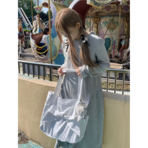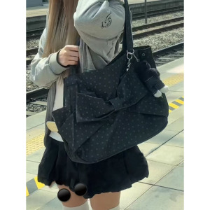 蝶結び大容量トートバッグ波点キャンバスバッグ迷彩大バッグ通勤バッグ授業用リュックサック脇下ショルダーバッグ