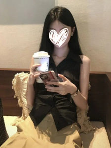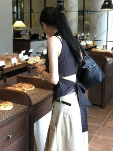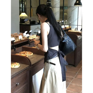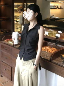 バックストラップウエスト露出ストライプシャツベスト2025新しいヘップバーンスタイルフレンチニッチトップ気質夏の婦人服