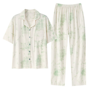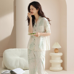 リヨセルテンセル綿女性のパジャマ半袖ズボン夏薄いピンクガールホームウェアセットパジャマ女性