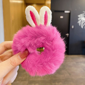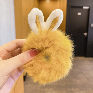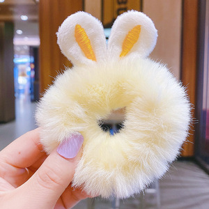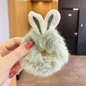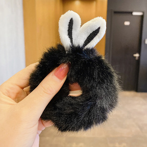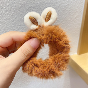 新款扎马尾头绳可爱皮筋仙女秋冬头饰韩版甜美兔耳朵毛绒大肠发圈
