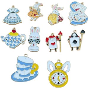 漫画不思議の国のアリス DIY 合金オイルドリップアクセサリー甘くてかわいいウサギの女性のバッグペンダント