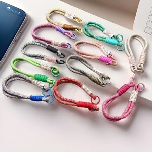 全国トレンドダブルバックル携帯電話ストラップ男性と女性のための同じスタイルの携帯電話ストラップ短いリストロープ手作りポリエステルカラーマッチング携帯電話チェーン
