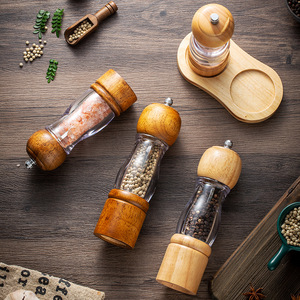 実木胡椒研磨器透明プラスチック胡椒研磨オーク材黒胡椒バラ塩研磨瓶調味料瓶