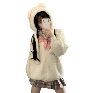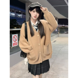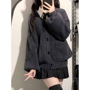 ミンクパイルのカーディガン学院の毛むくじゃら減齢fufu春のゆるい小柄なニットセーターjkコートの女性