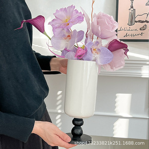 フレンチレトロな背の高いセラミック花瓶、家庭的な雰囲気、花の水耕栽培装置、コーヒーショップ、B&Bの柔らかい装飾品