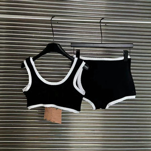 ニッチデザイン 24 春夏新作黒と白のスプライシング波状エッジ水着キャミソールレディーススリムショートトップ
