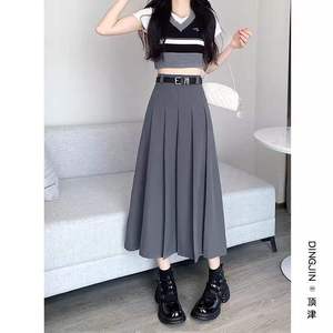 (TR质量+隐形拉链+腰带)百褶裙半身裙小众设计感中长款A字裙长