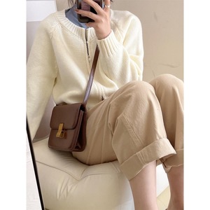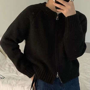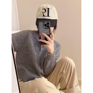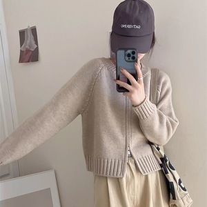 小柄な小さい丸首のファスナーのキャンディー色のニットのカーディガンの女性の秋冬の新型はやせている気質のセーターのコートを現します。