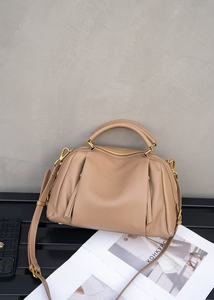 本革ボストンバッグ女性2025新型ファッション本革手提げ枕バッグ女性中年お母さん復古バッグ女性
