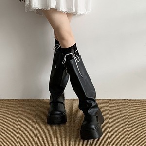 黒いアメリカのレトロな高さの厚い底の長靴の女性2025新型の夏の爆発の街はスカートの長いブーツを配合します。