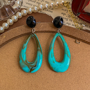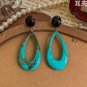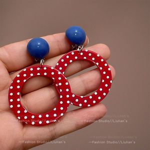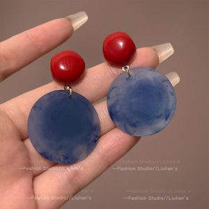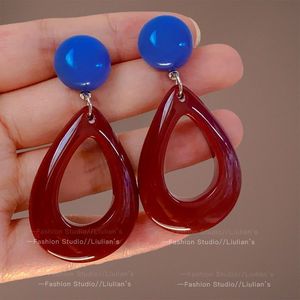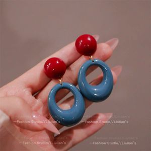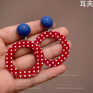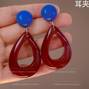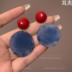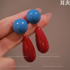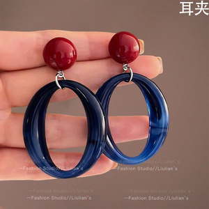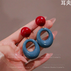 秋冬イヤリング、耳穴不要、80年代香港風、赤と青、女性向け新作、フレンチスタイル、高級感、軽奢、ニッチイヤリング、リング装飾