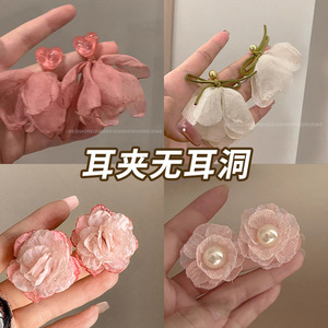 オフホワイトシフォンフラワー【イヤークリップ風】