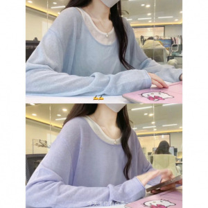 ドーパミン薄手日よけブラウスニッチデザイン微透け高級長袖シャツトップス