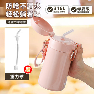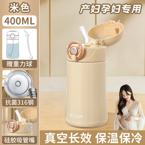 妊婦用の316ステンレス鋼の重力ボールストローカップ、妊婦用の特別な横たわって飲むカップ、断熱カップ、大人の窒息防止カップ