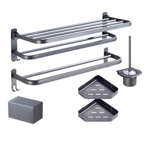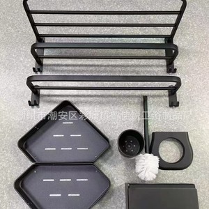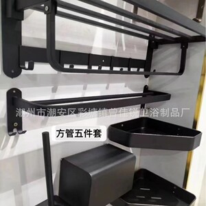 卫浴五件套毛巾杆卫生纸架浴室五金套装不锈钢毛巾架免打孔挂件