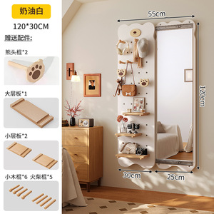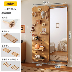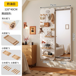 クマ風クリーム白クマ穴ボード全身ミラー一体型160*60