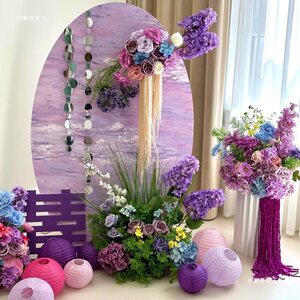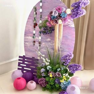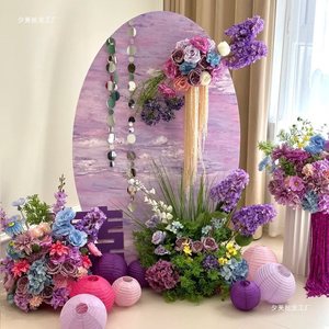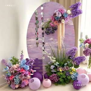 紫色のホテルの結婚式の部屋のレイアウト KT ボードウェルカムカード結婚式の婚約バナー吊り布ドレッシングガウン写真の背景壁