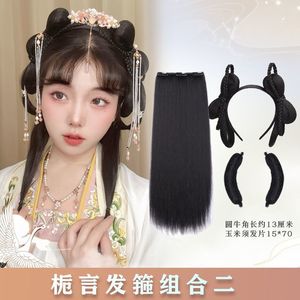 漢服ウィッグオールインワンレイジーヘアフープウィッグバッグソフトヘアバンドル女性の古代スタイルのソフトパッドヘアバッグ古代衣装帽子