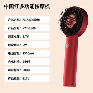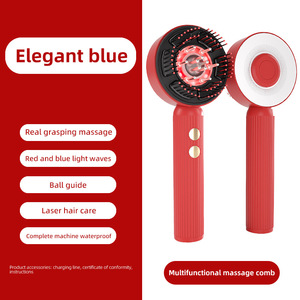 新しいEMSマイクロ電流電気マッサージ櫛の頭に赤い髪をつけてマッサージします。
