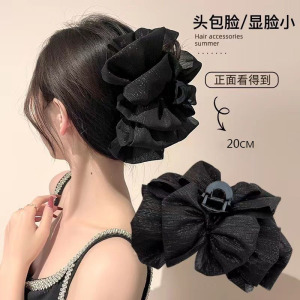 ヘアアクセサリー、妖精のような高級感、後頭部に大きなリボン、シアサッカー、女性用の大きなグリッパーシャーククリップヘッドドレス