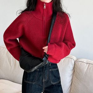 ショートレイジースタイルの女性用ハーフジップタートルネックセーター、秋冬ニットセーター、柔らかくワックスのようなルーズトップ、トレンディ