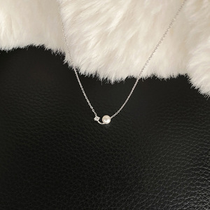 スパークリングダイヤモンド一粒パールネックレス(ホワイトゴールド)