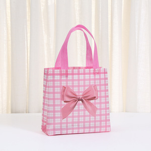 蝶結びプリント手提げ袋かわいい包装袋不織布誕生日プレゼント袋防水出前ショッピング