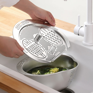 304 ステンレス鋼の多機能野菜おろし金、ジャガイモをこする波状ナイフ加工品、米洗いボウル、水切りバスケット、家庭用