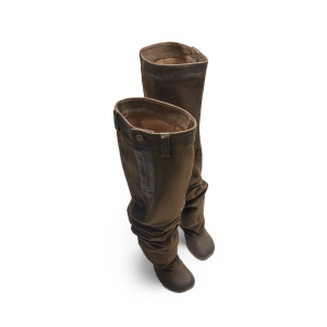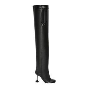 2024 秋と冬の新しい対外貿易スクエアトゥ特殊形状ヒールブーツ大きなラウンドトゥセクシーな膝上大型パイルブーツ女性用