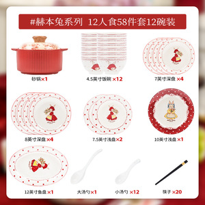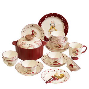 ウサギの碗の皿のセットの家庭用の2025新型のかわいい顔の値のご飯の碗の野菜の皿の高顔の値の調理器具