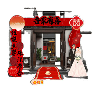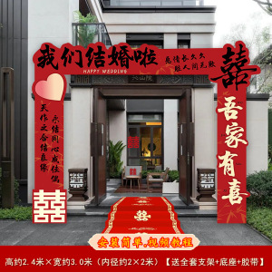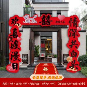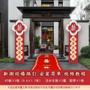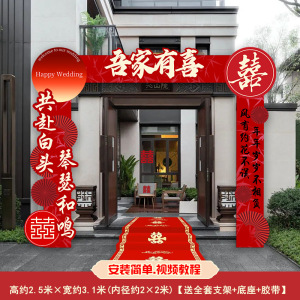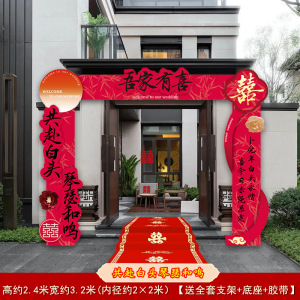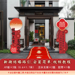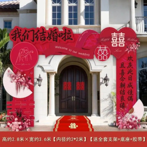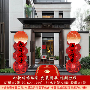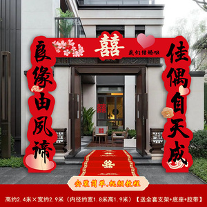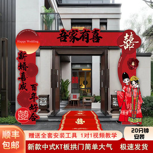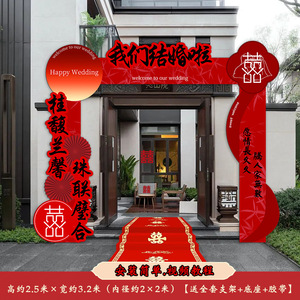 户外中式结婚装饰迎宾拱门kt板立柱门口现场布置喜庆婚庆路引婚礼