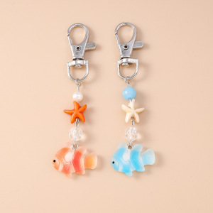 新しいファッションデザイン海洋動物キーリングパーソナライズされたクリエイティブデザインヒトデカクレクマクサキーホルダーペンダント