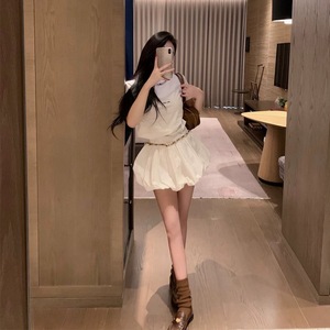 mmシリーズ 25ss 春夏新作 リゾート風 ハンドメイドビーズウェビング 半袖+年齢軽減花蕾スカート ファッションスーツ