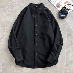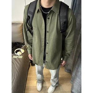 2025春秋新款男士衬衫休闲痞帅纯色工装日系潮流ins长袖衬衣