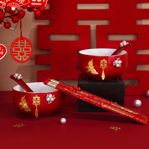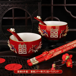 【凤冠霞帔】喜碗筷6件套(DIY成品发货)