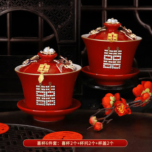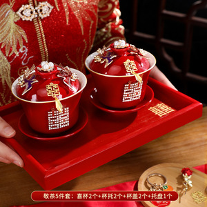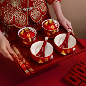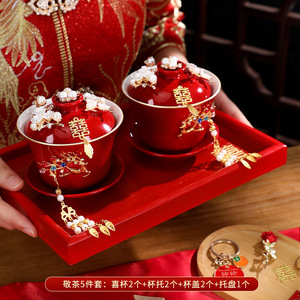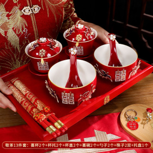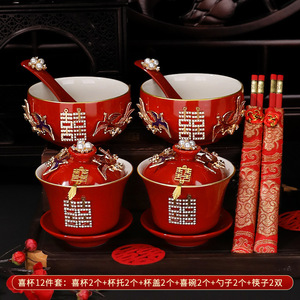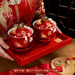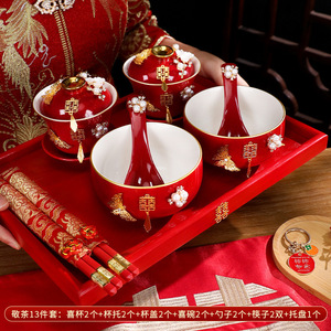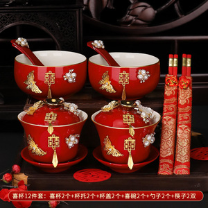 敬茶杯套装结婚用品大全婚礼改口茶具红碗筷女方陪嫁喜碗对碗杯子