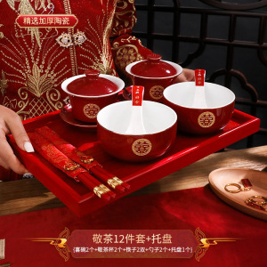 【霁红圆喜】喜碗敬茶杯12件套