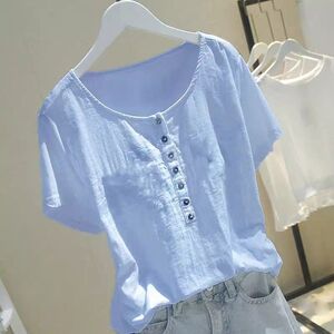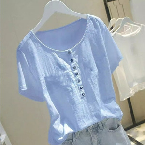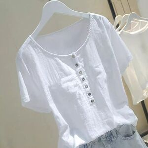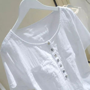 2025 新しい夏の韓国スタイルのスプライシングシャツ白半袖ルーズスリム半袖トップ綿とリネン