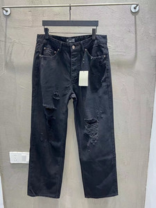 オリジナルパリBスタイル パンク加工 ブラックジーンズ パンツ 男女兼用