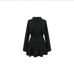 プラスサイズデザイン長袖ドレスシャツシャツ新しい気質白ウエスト痩身フレンチドレススカート