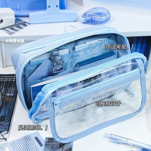 透明なインスタ風大容量ペンケース、高級感のある文房具箱、小学生向け多機能ペンケース