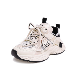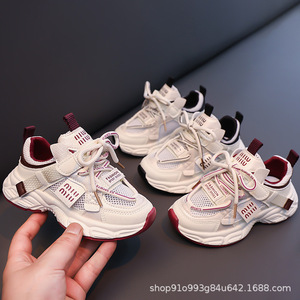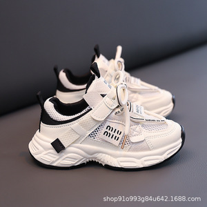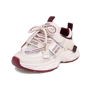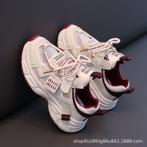 女の子の運動靴のストラップのネットの通気性のあるランニング靴の子供のカジュアルシューズの中で大きい子供の滑り止めの子供の靴の春秋2025