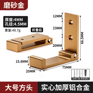 アルミ合金折りたたみフック家庭用パンチフリーコートフック壁掛け折りたたみ黒フックソリッドシングルフック