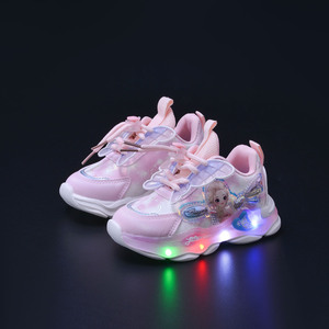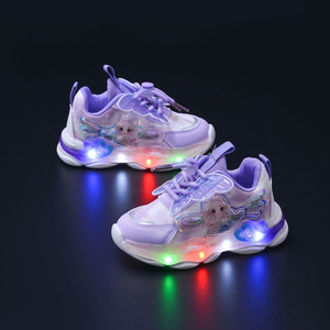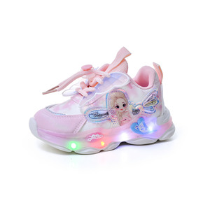 卸売りは明かりの女の子の運動靴の2025春の新型のファッションの蝶の王女の靴の中で子供のランニング靴の現物を持ちます。