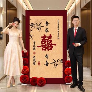 婚約宴会レイアウト装飾雰囲気シーンホテルのドア看板中国風の写真ウェルカムカード kt ボード背景壁