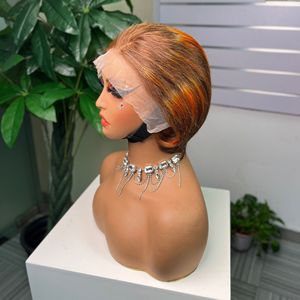 ウィッグ 女性用 ミディアムロングヘア 偏心韓国風 前髪なし 13x4フロント 人毛 ブラウン オレンジ